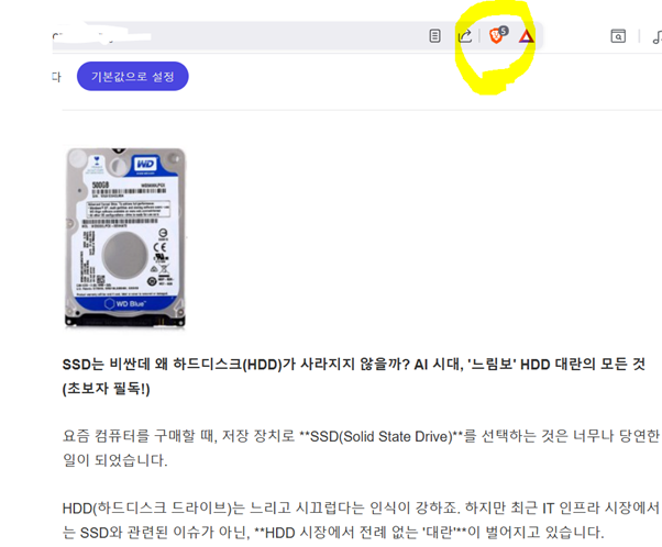 브레이브 브라우저로 들어갔을 때 광고가 나오지 않음(동일한 내용의 글로 테스트 함)