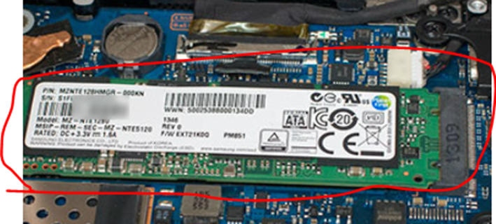 요즘은 최저가로 찾아보면 20만원 후반대의 emmc 하드가 달려있는 이것은 노트북 메인보드에 납땜되어 있습니다.
