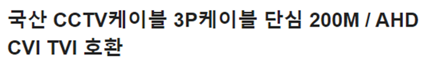 설명에 나온것처럼 길이가 200미터이며 AHD카메라 뿐아니라 CVI카메라나 TVI카메라와도 호환이 된다고 적혀 있습니다.